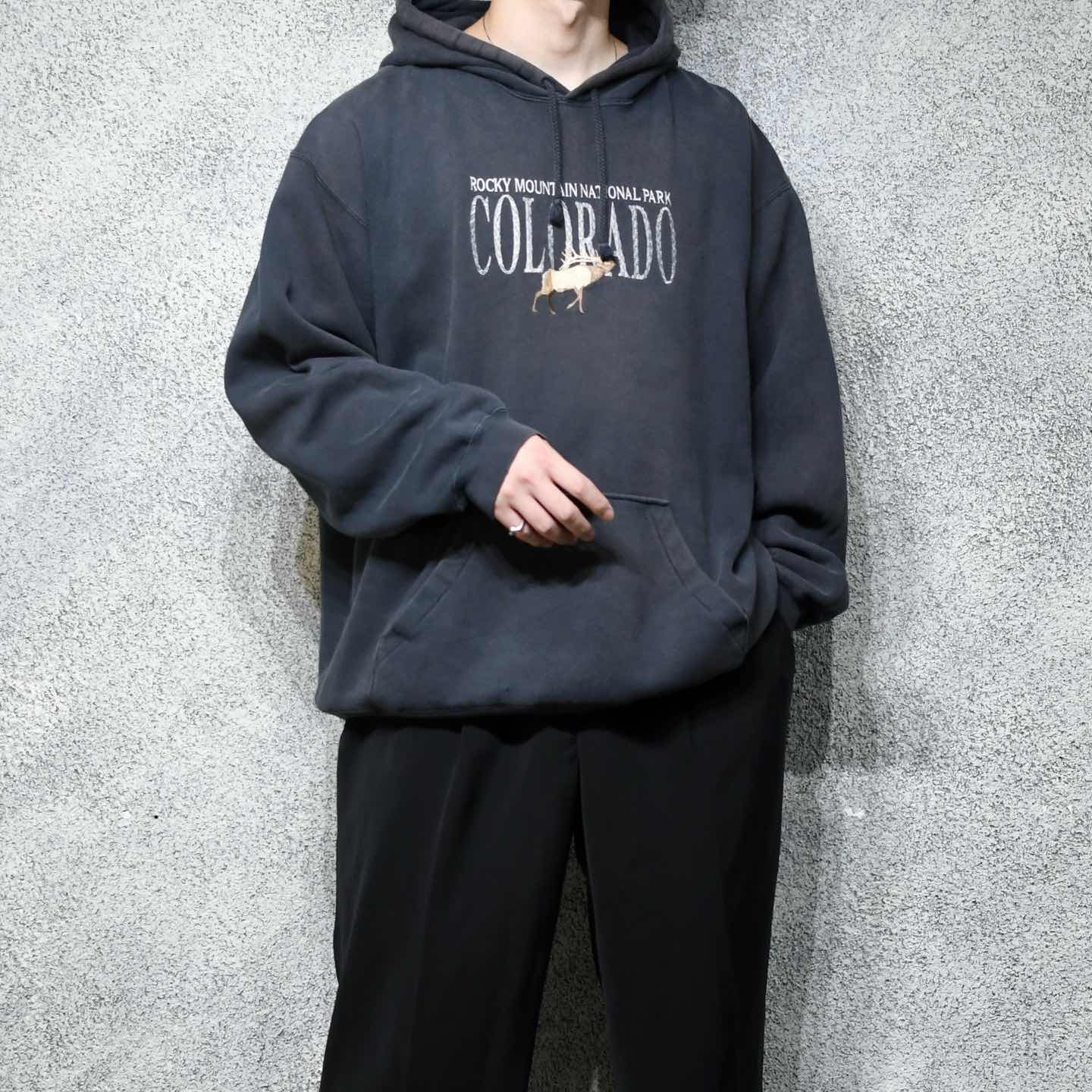 古着 ヘラジカ 刺繍 スーベニア パーカー フーディ フェード プルオーバー