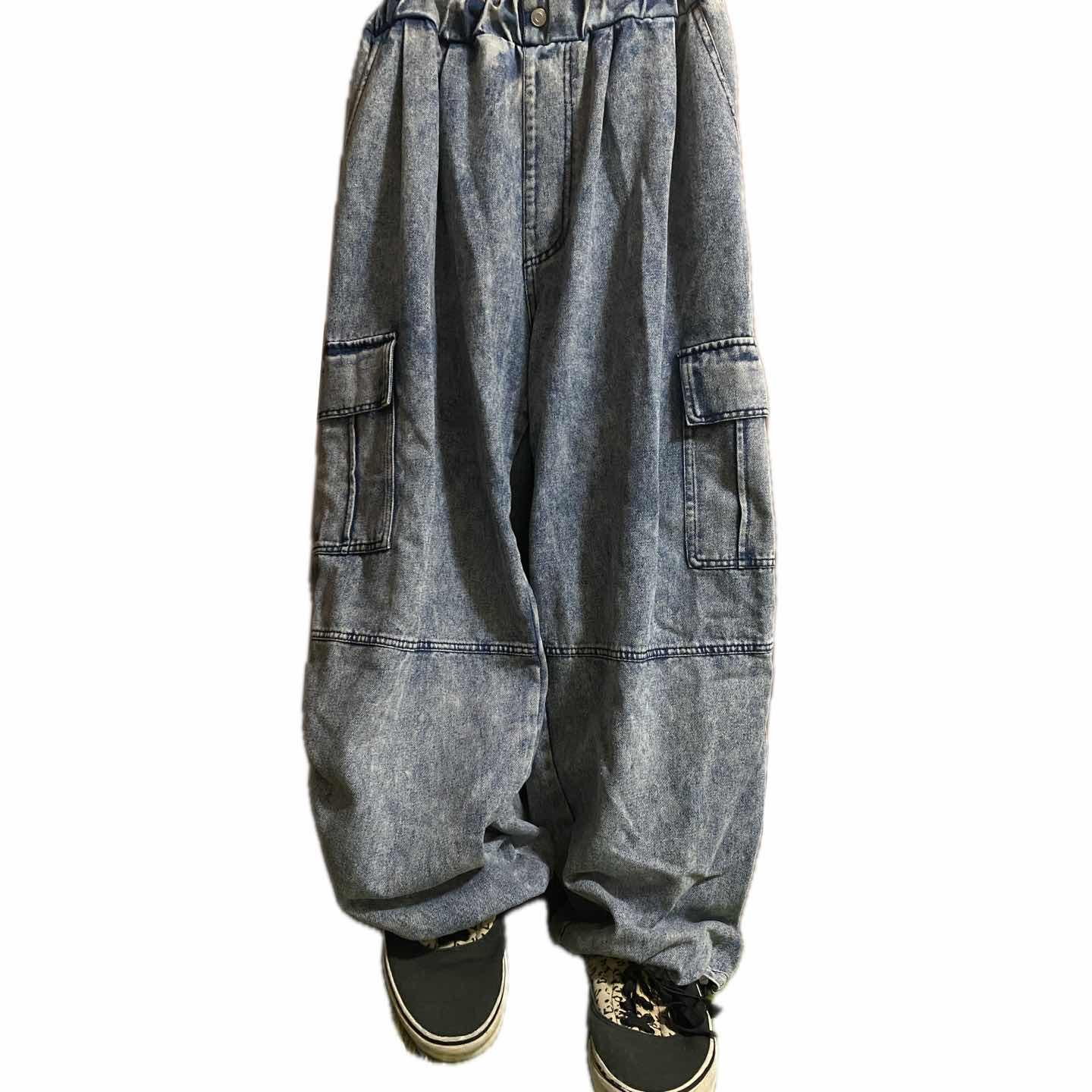 アルール ゆるダボ カーゴ ブラックデニムパンツ フェード感 綿 ズボン 黒 L