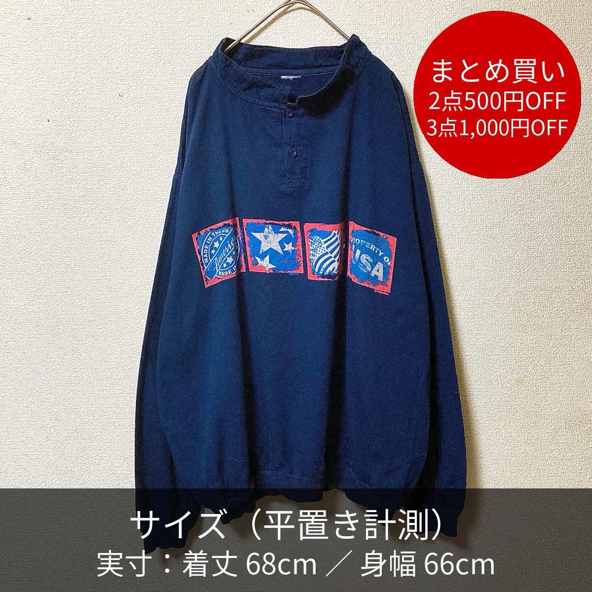 古着 切り替え デザインシャツ プルオーバーシャツ ポロシャツ ネイビー