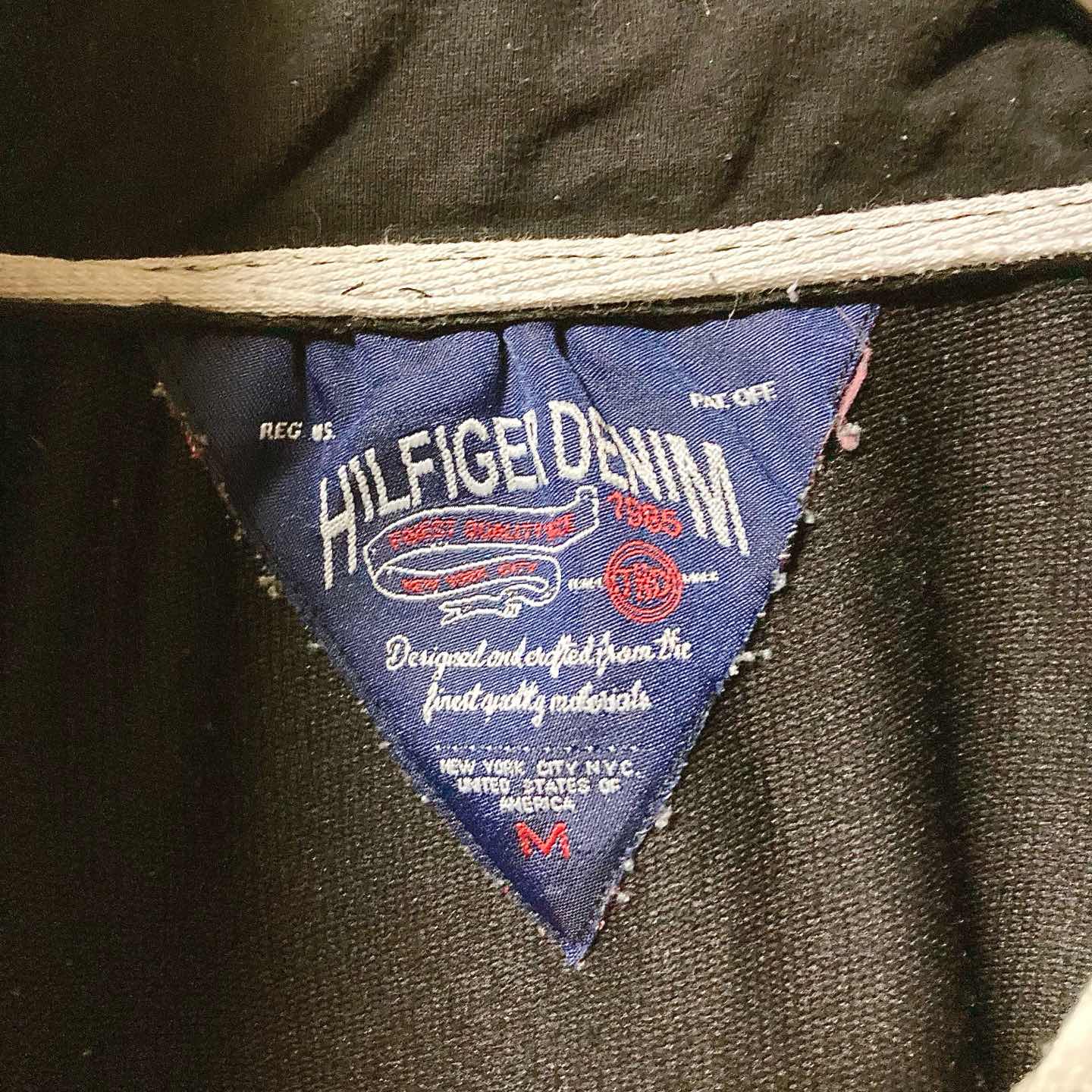 Y2K vibe with classic black base and tricolor taping. Crisp hand, easy to style with denim or cargos. • Size (flat): Length 63cm / Pit-to-pit 52cm ≈ JP M–L • Fit: Regular to slightly relaxed • Condition: Good vintage (light wear, no major flaws) • Shipping: Protected packing, dispatch in 1–2 days • Bundle deal: 2 items = ¥500 OFF / 3 items = ¥1,000 OFF #vintage #y2k #hilfigerdenim #tommyhilfiger #zipjacket #streetwear #tricolor #black #menswear