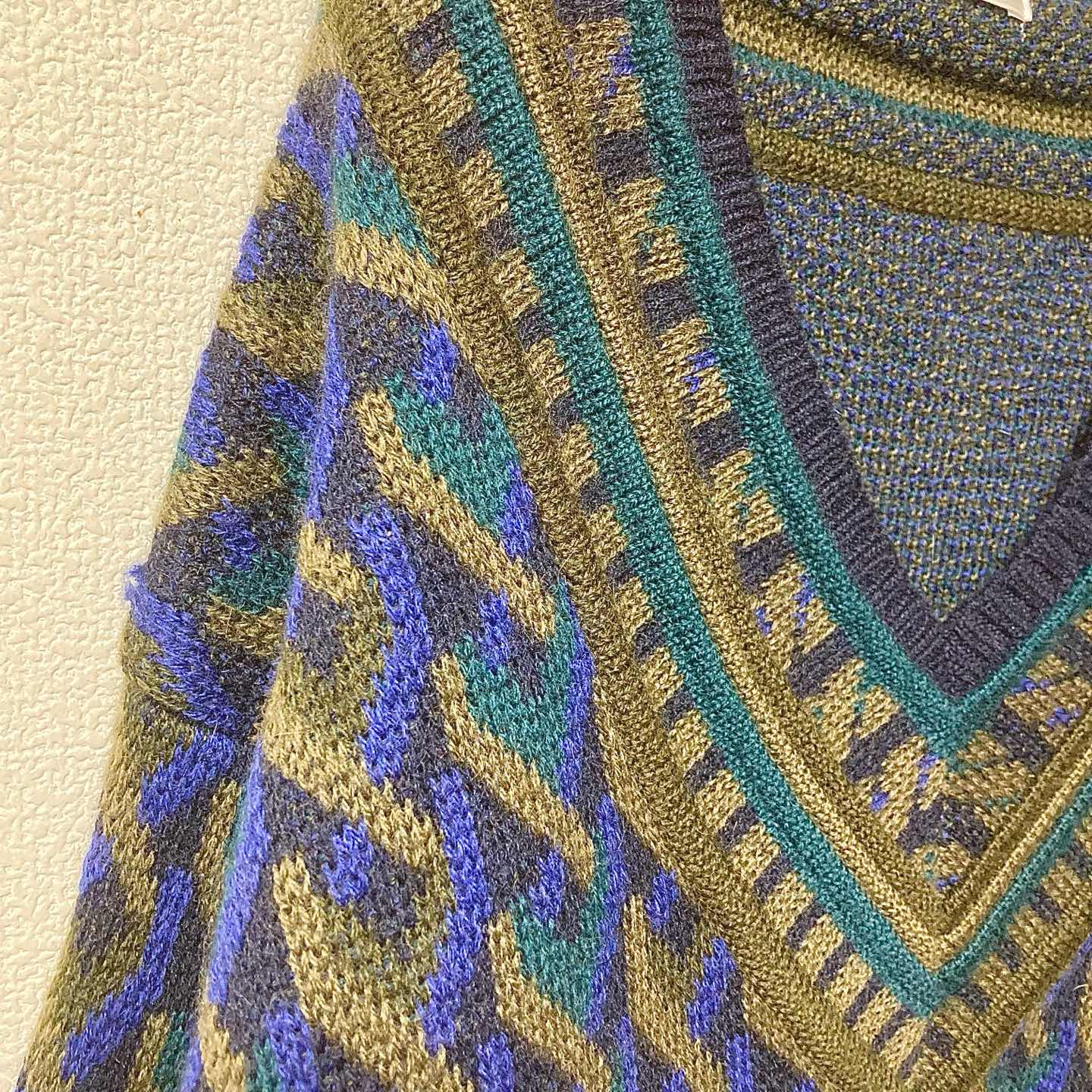 COOGI-inspired geometric texture with clean V-neck. Longer length with tidy width for a modern silhouette. • Fabric: 100% Wool • Size (flat): Length 72cm / Pit-to-pit 51cm ≈ JP L • Condition: Good vintage (light wear, no major flaws) • Shipping: Protected packing, dispatch in 1–2 days • Bundle deal: 2 items = ¥500 OFF / 3 items = ¥1,000 OFF #vintage #90s #coogiinspired #geometricknit #wool #vneck #navy #streetstyle #menswear