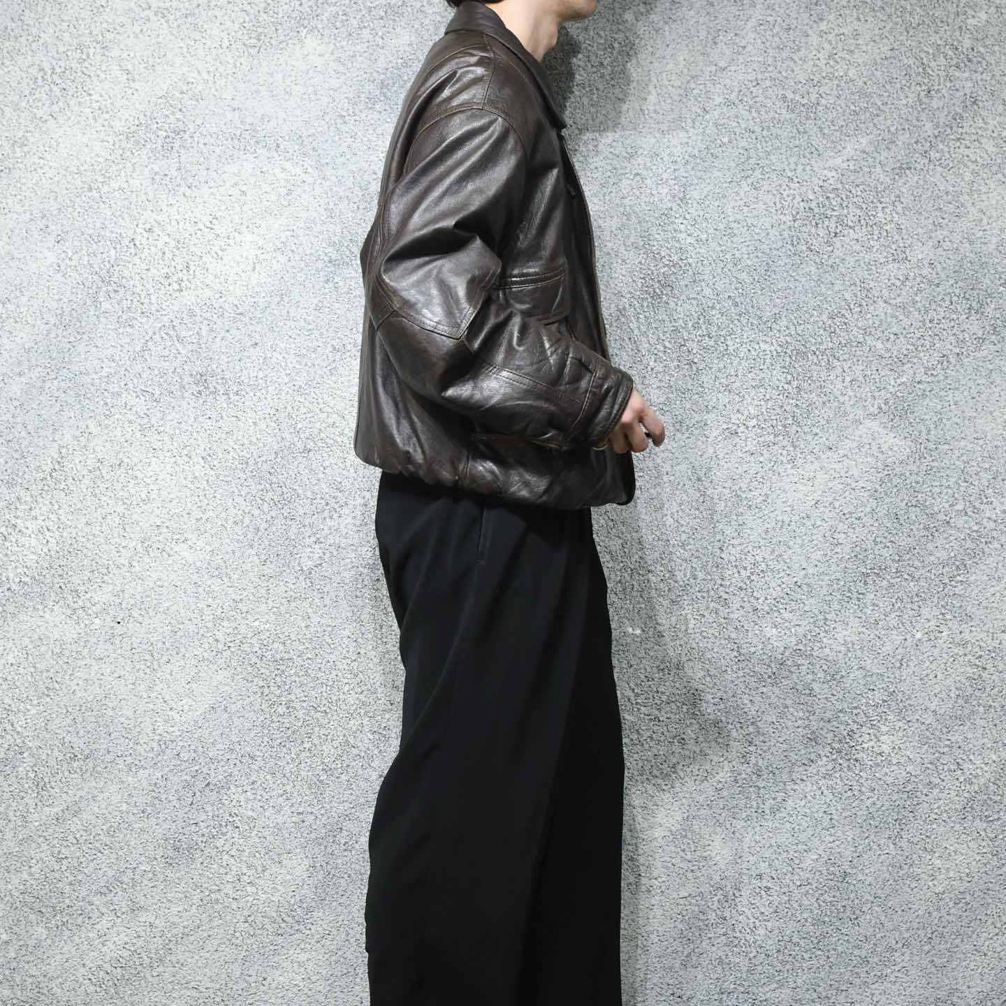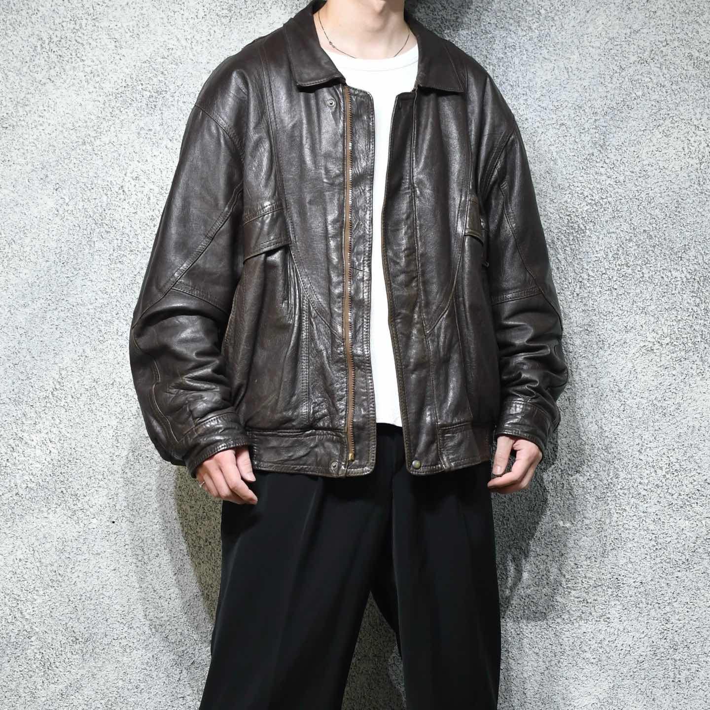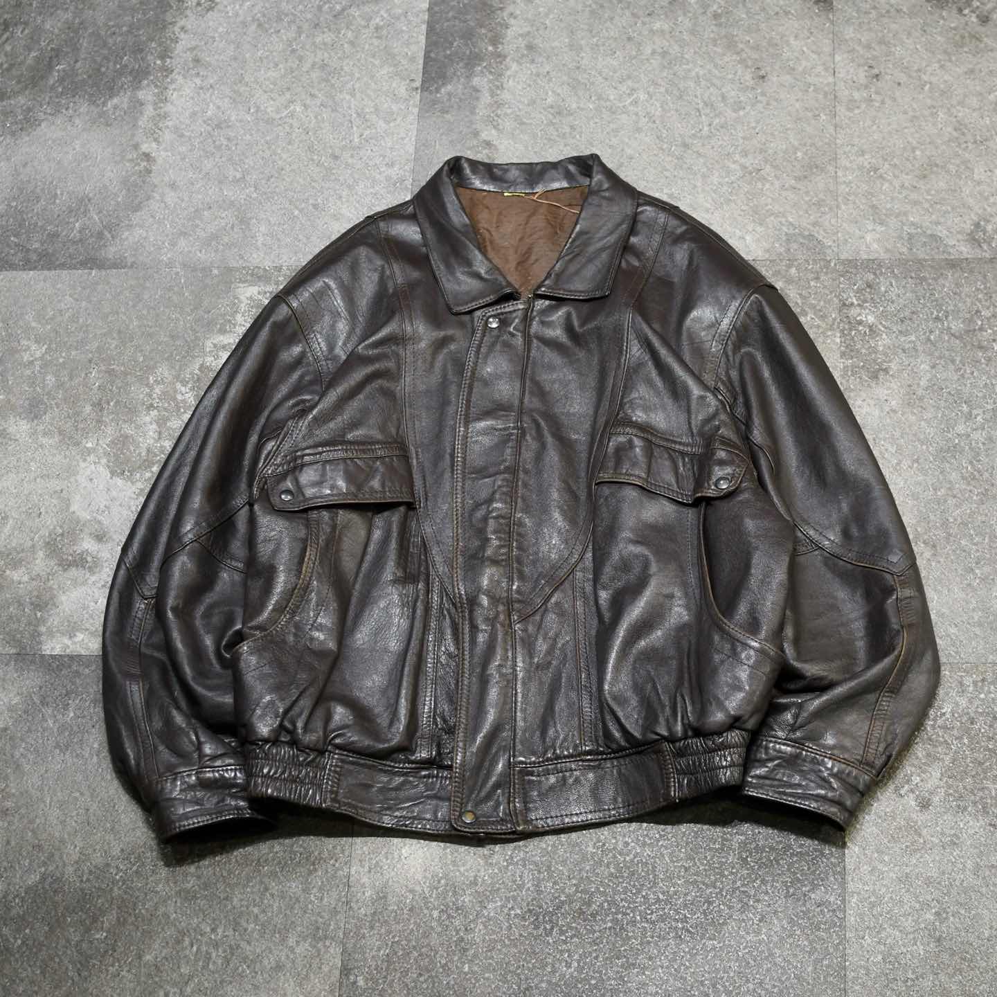 古着 とろみ レザーブルゾン ブラウン 茶色 レザージャケット ブルゾン ジャケット