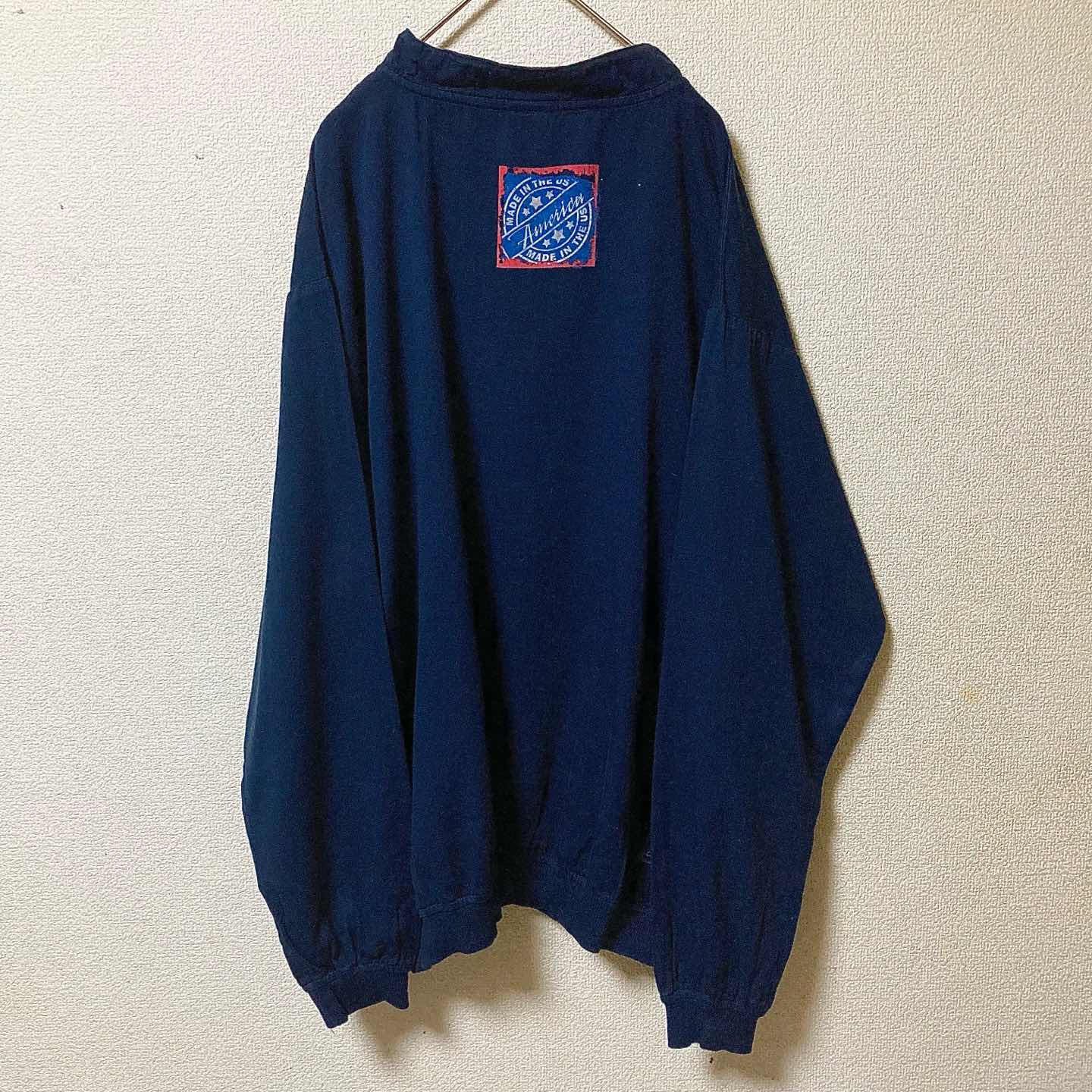 古着 切り替え デザインシャツ プルオーバーシャツ ポロシャツ ネイビー