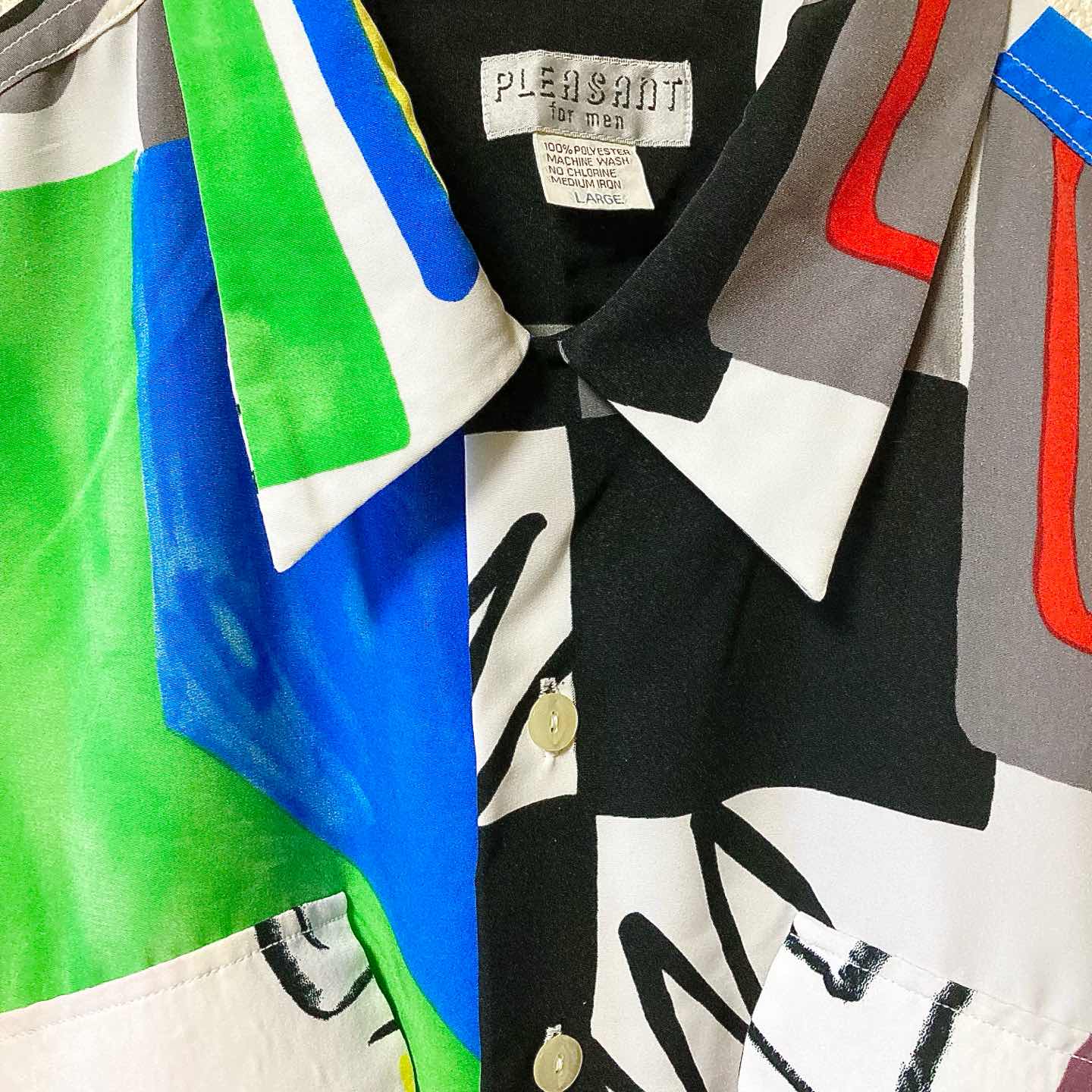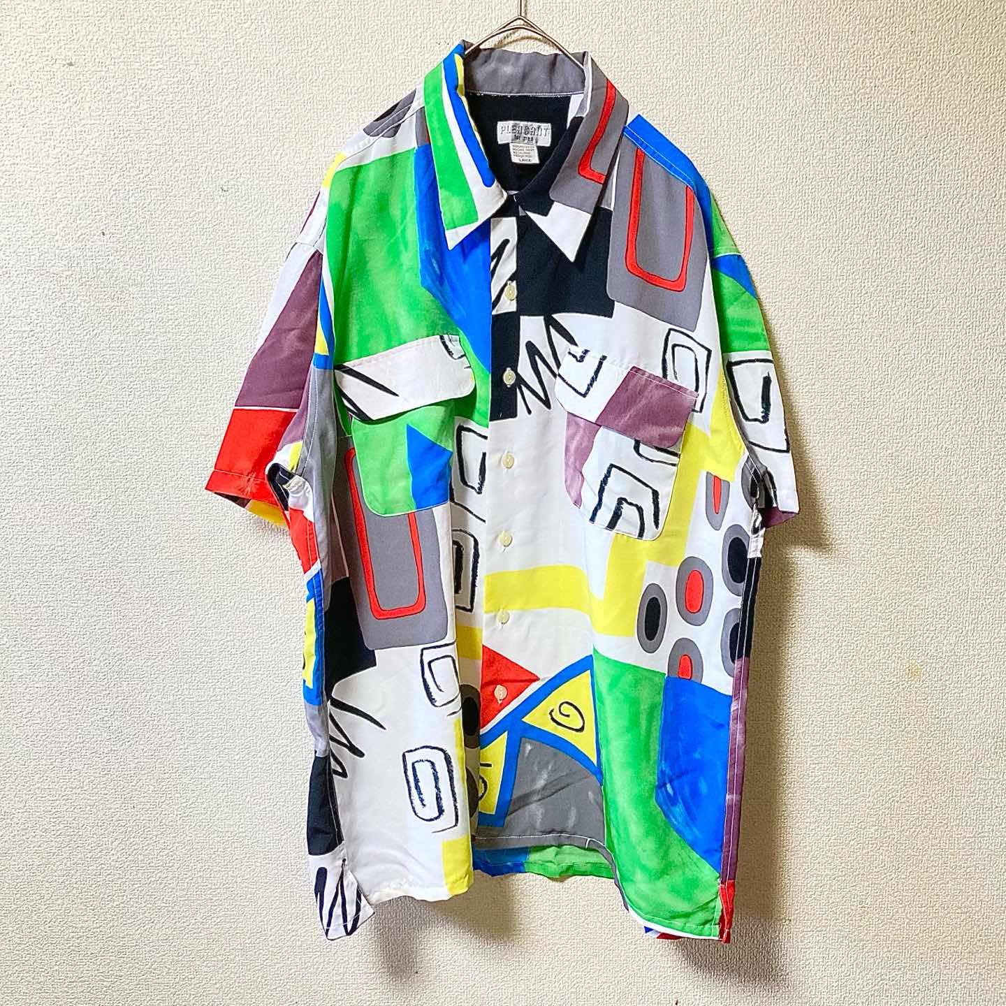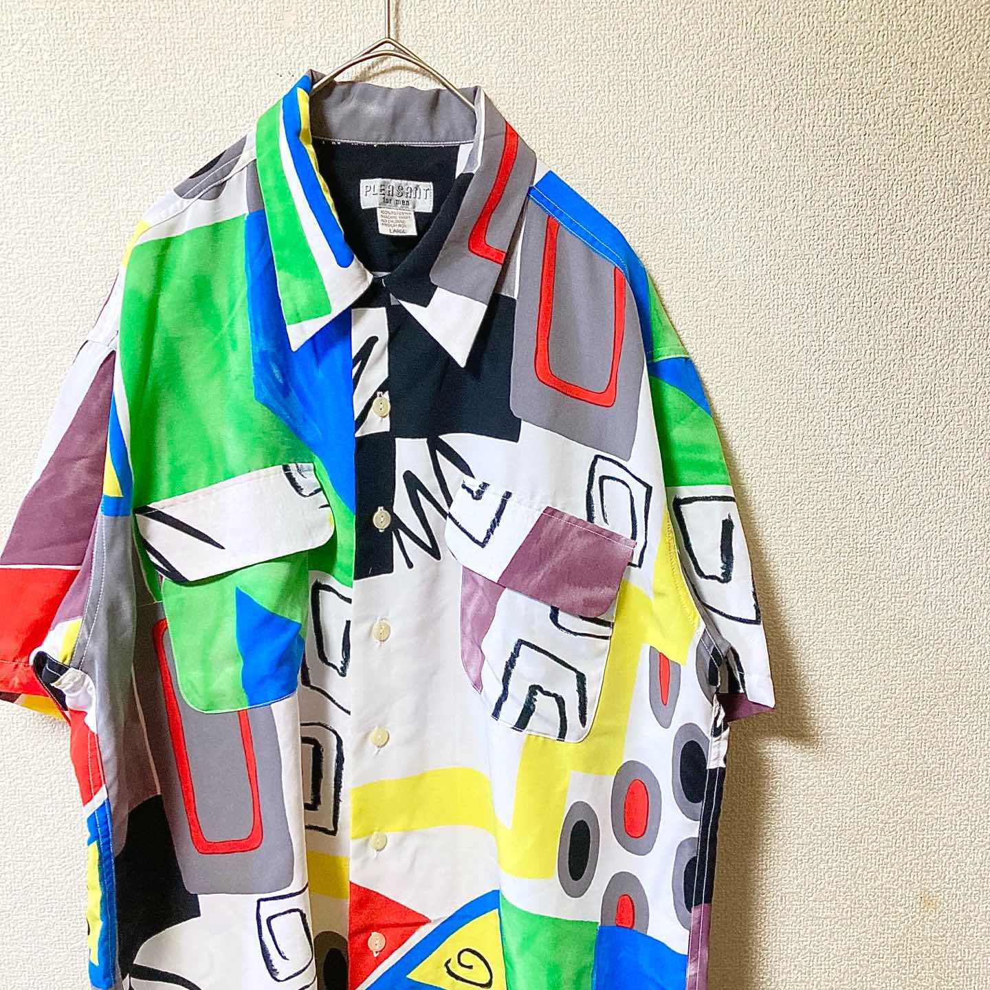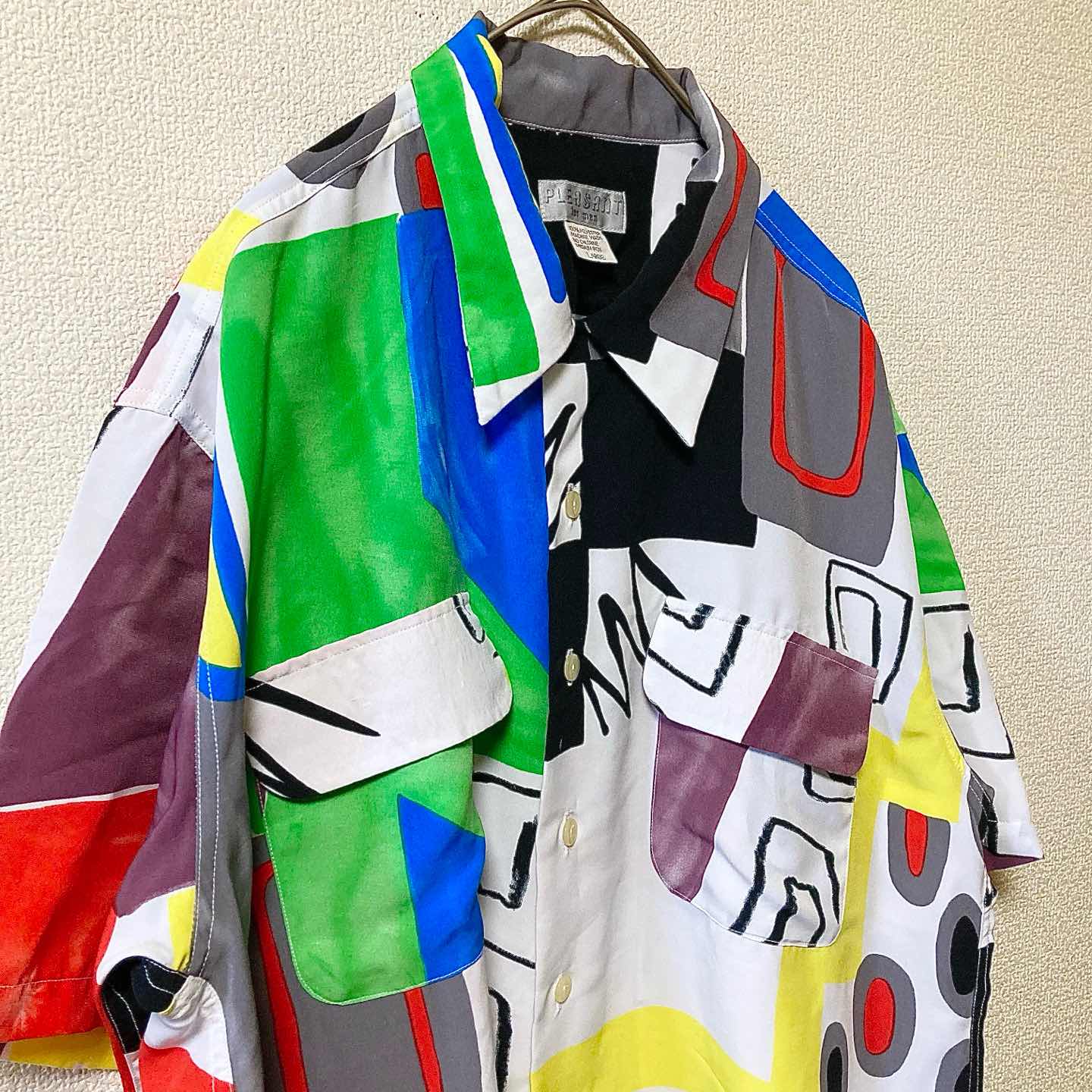 PLEASANT Art Allover Pattern Shirt L Vintage Style