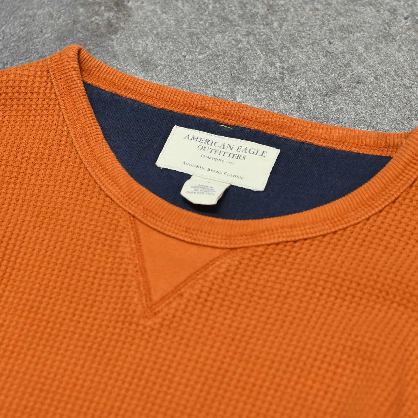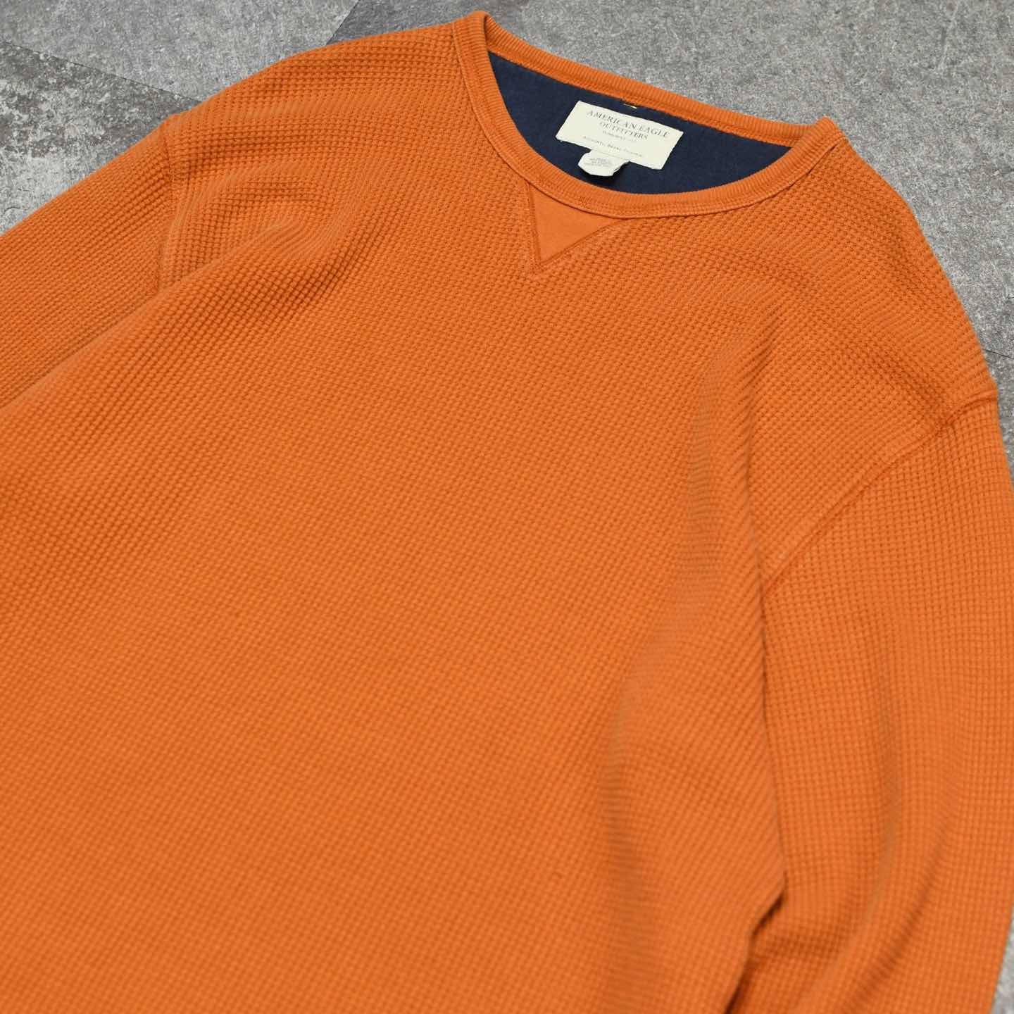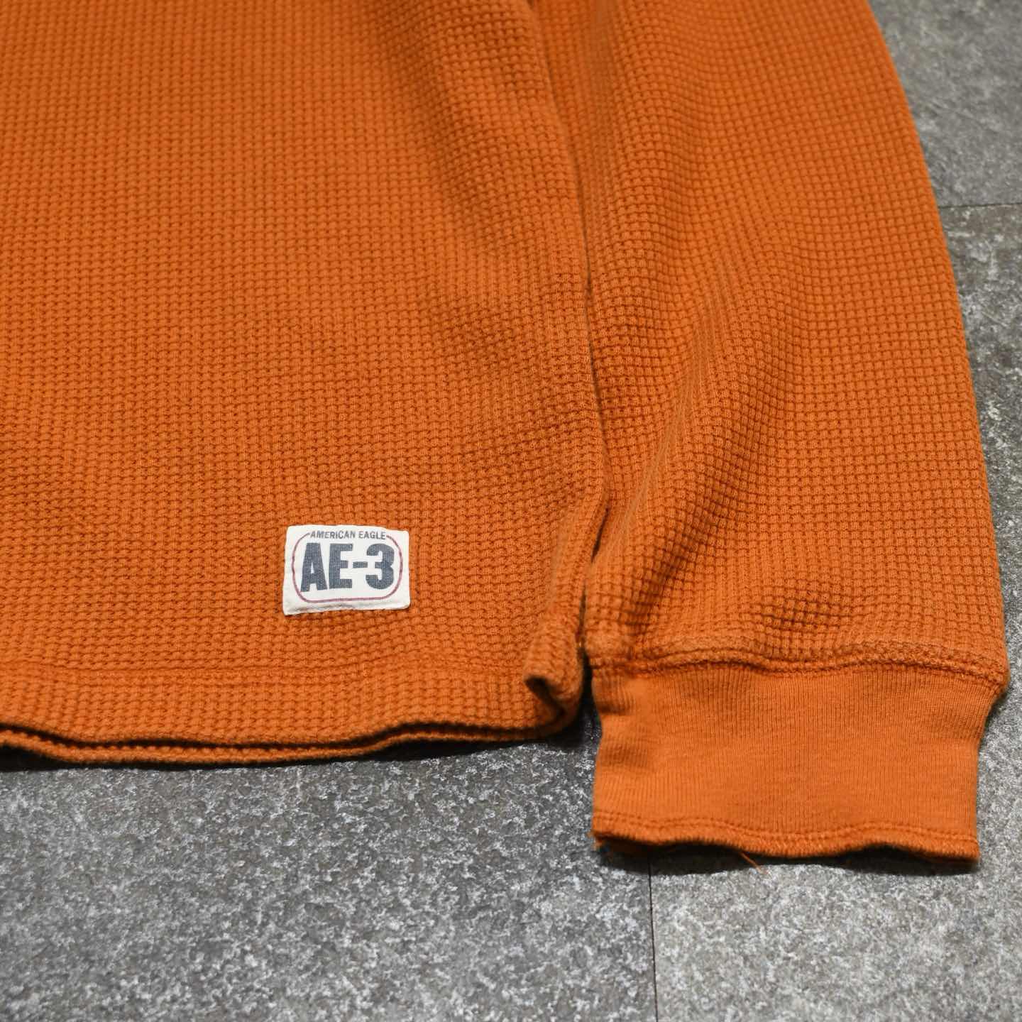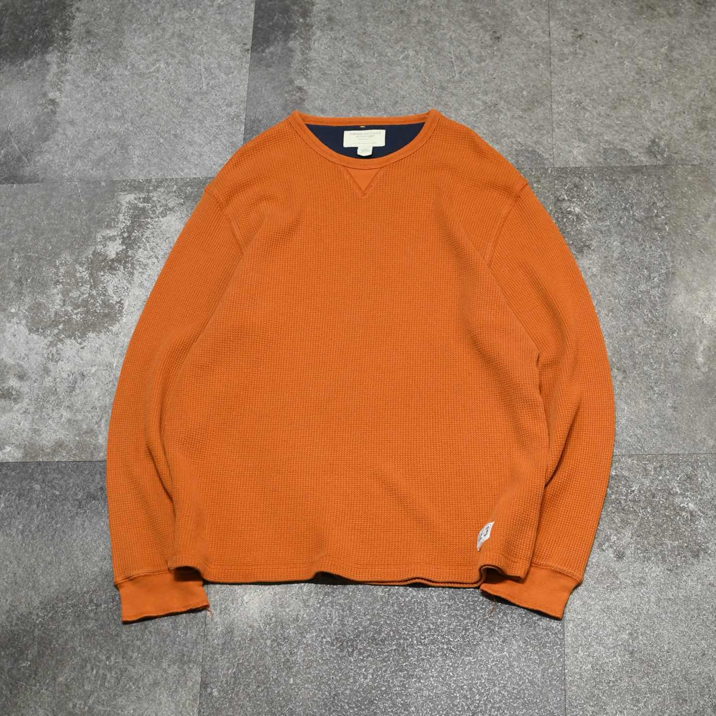 古着 American Eagle オレンジ サーマル ワッフル ロンT カットソー