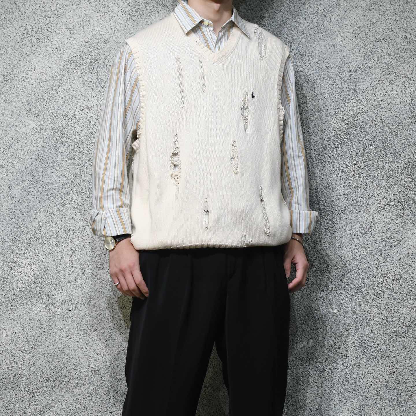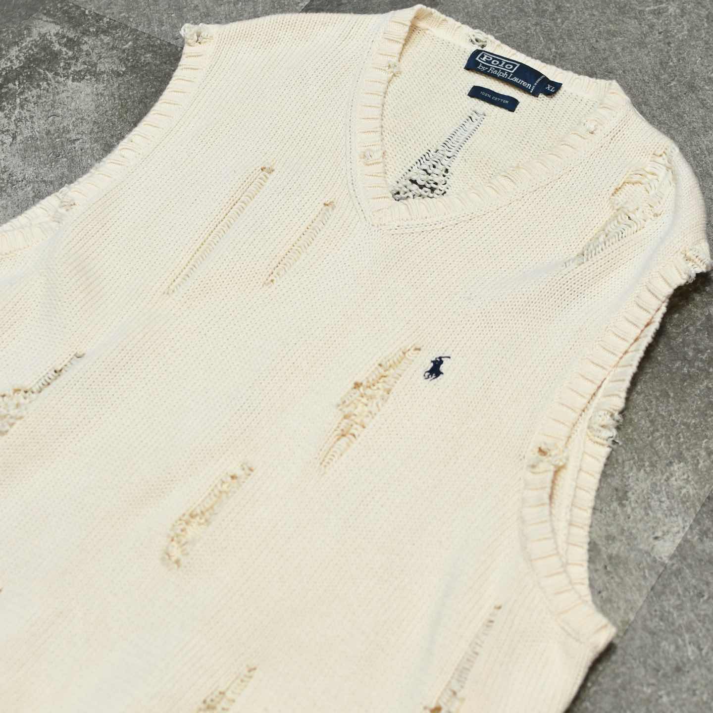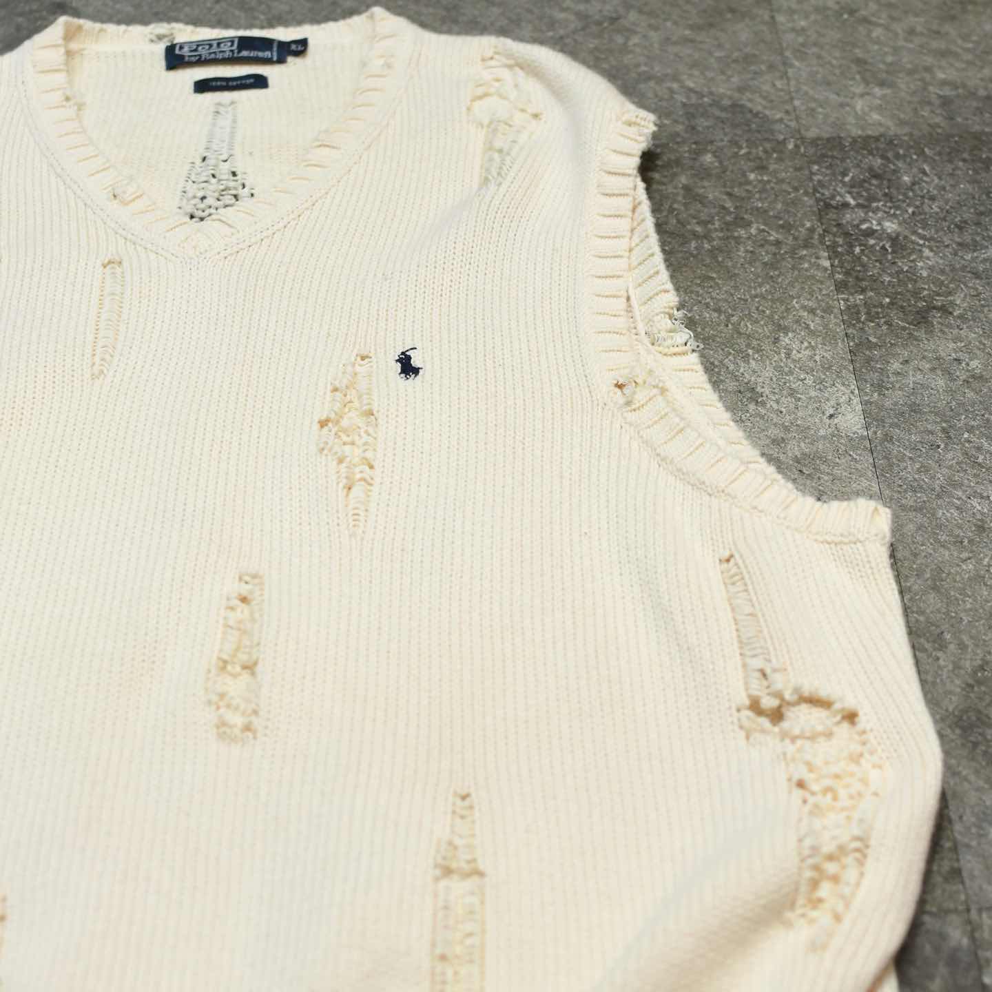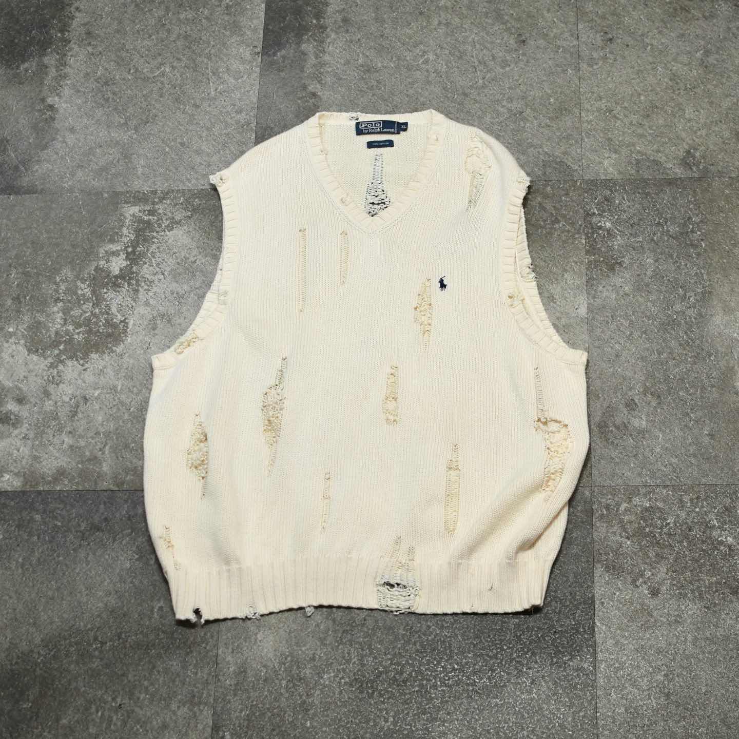 古着 POLO RALPH LAUREN リメイク ニットベスト ダメージ ボロ ベスト