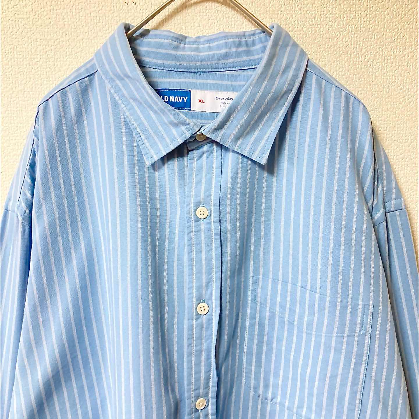 [Category] Long-sleeve shirt [Brand] OLD NAVY [Fit] XL (relaxed) [Measured flat] Length 79cm / Pit-to-pit 65cm [Notes] Muted blue stripe; easy daily wear. [Condition] Good used; no major flaws. [Shipping] Tracked; packed waterproof + cushioning. [Bundle] Follow/Bundle discount available. (JP補足:近年の“ヴィンテージ風”。実寸優先でご検討ください。) #OldNavy #stripe #shirts #XL #daily #casual #street #vintage #90sstyle #ヴィンテージ #ビンテージ