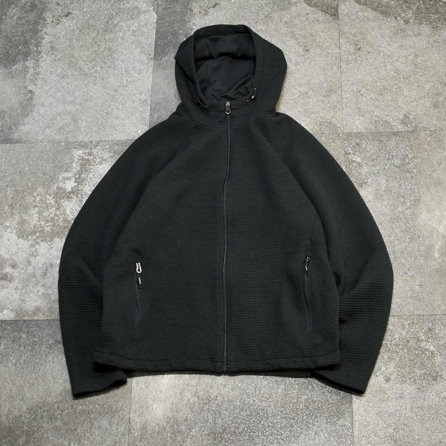 古着 New Balance ワッフル生地 ジップアップ フーディ パーカー 黒