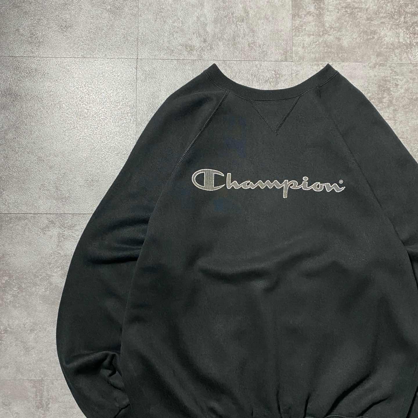 00's チャンピオン プリント ブラック 黒 ラグランスウェット トレーナー
