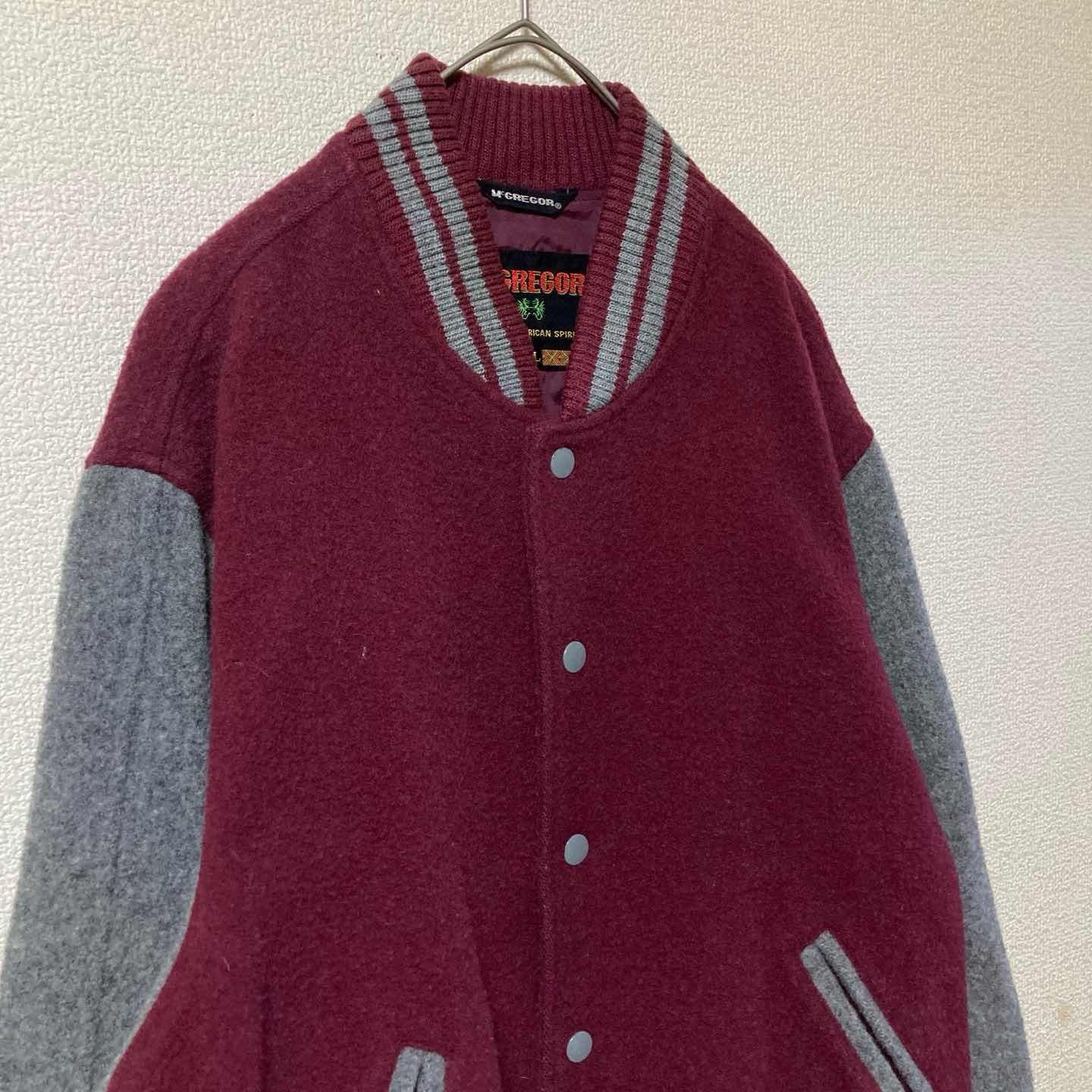 80s〜90sマクレガーボルドー×グレー袖切替ウールスタジャンL