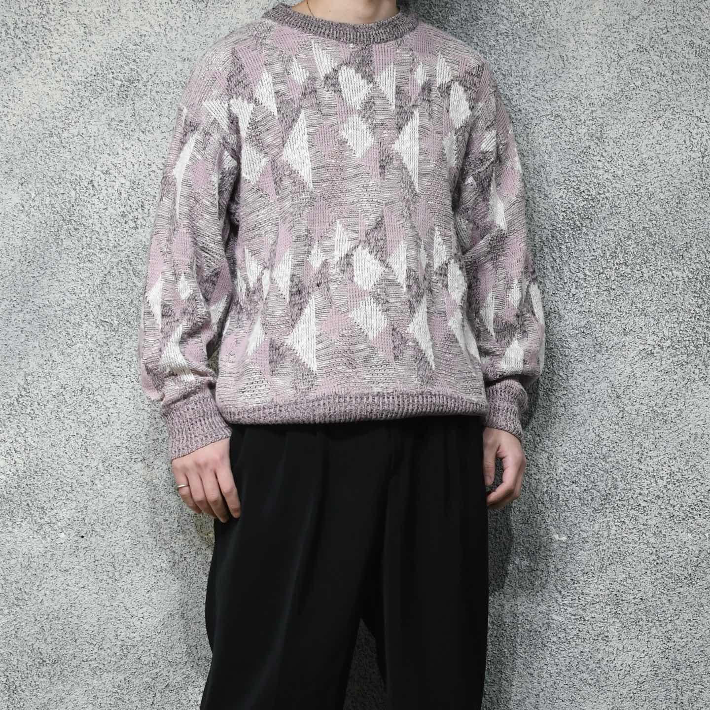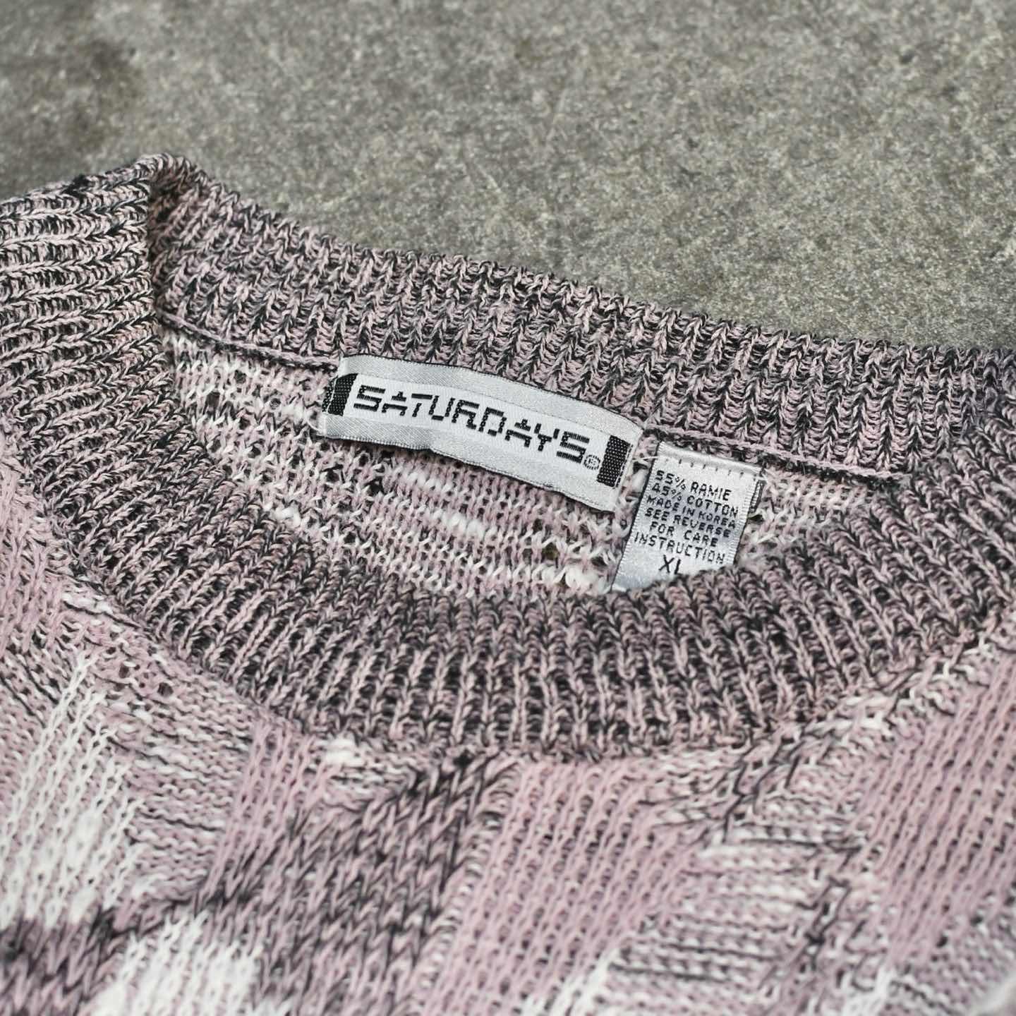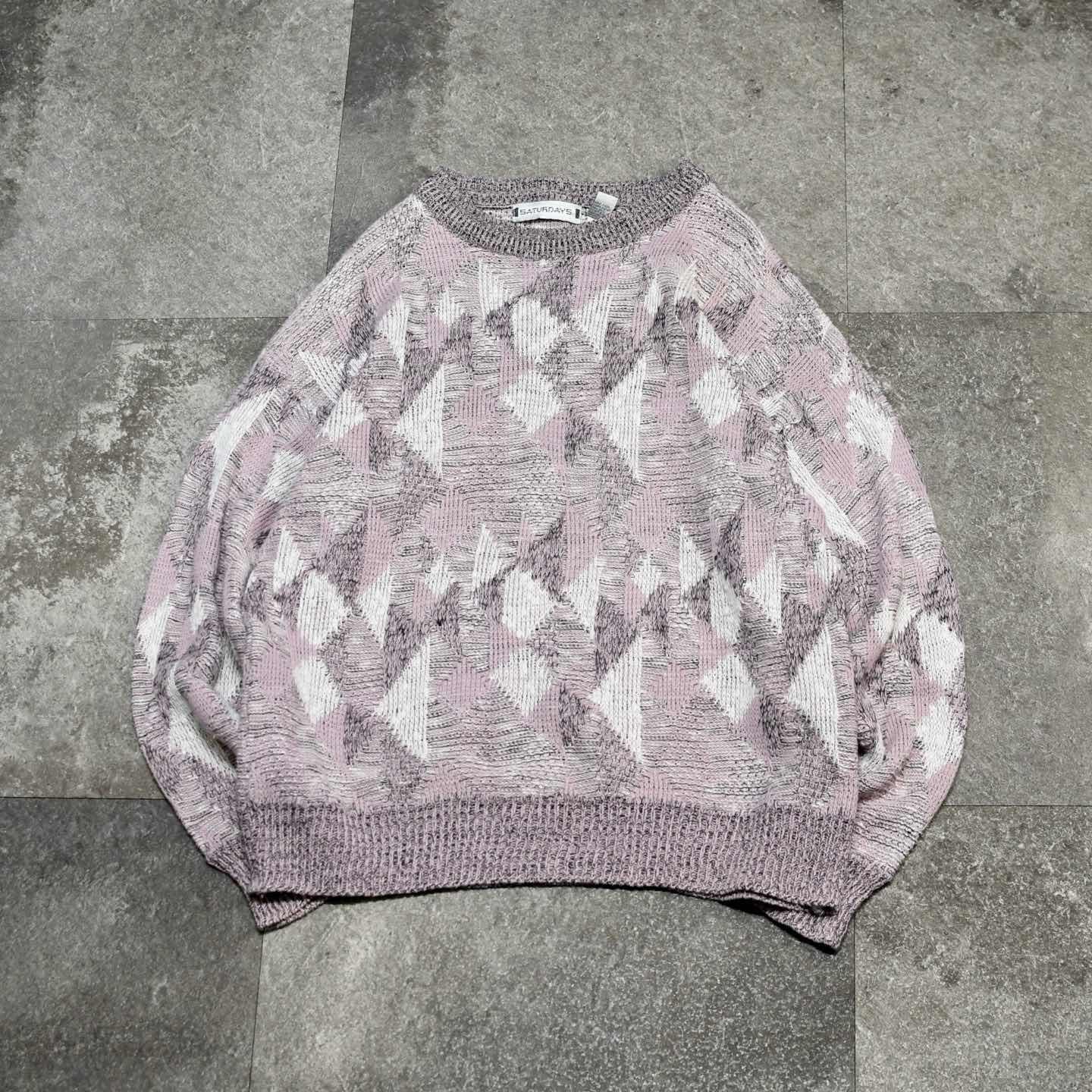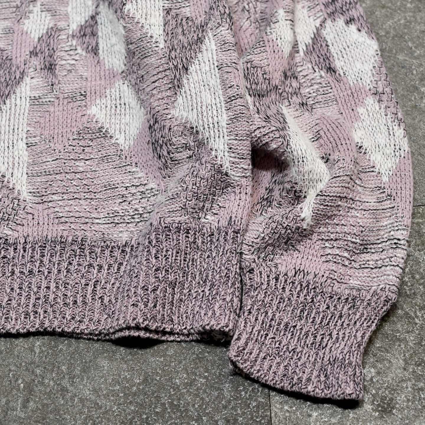 古着 コットン ラミー デザインニット ニット セーター ピンク メランジ