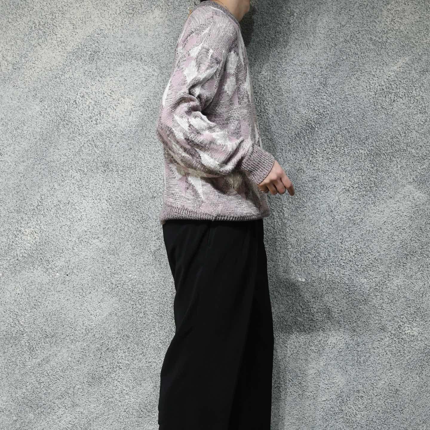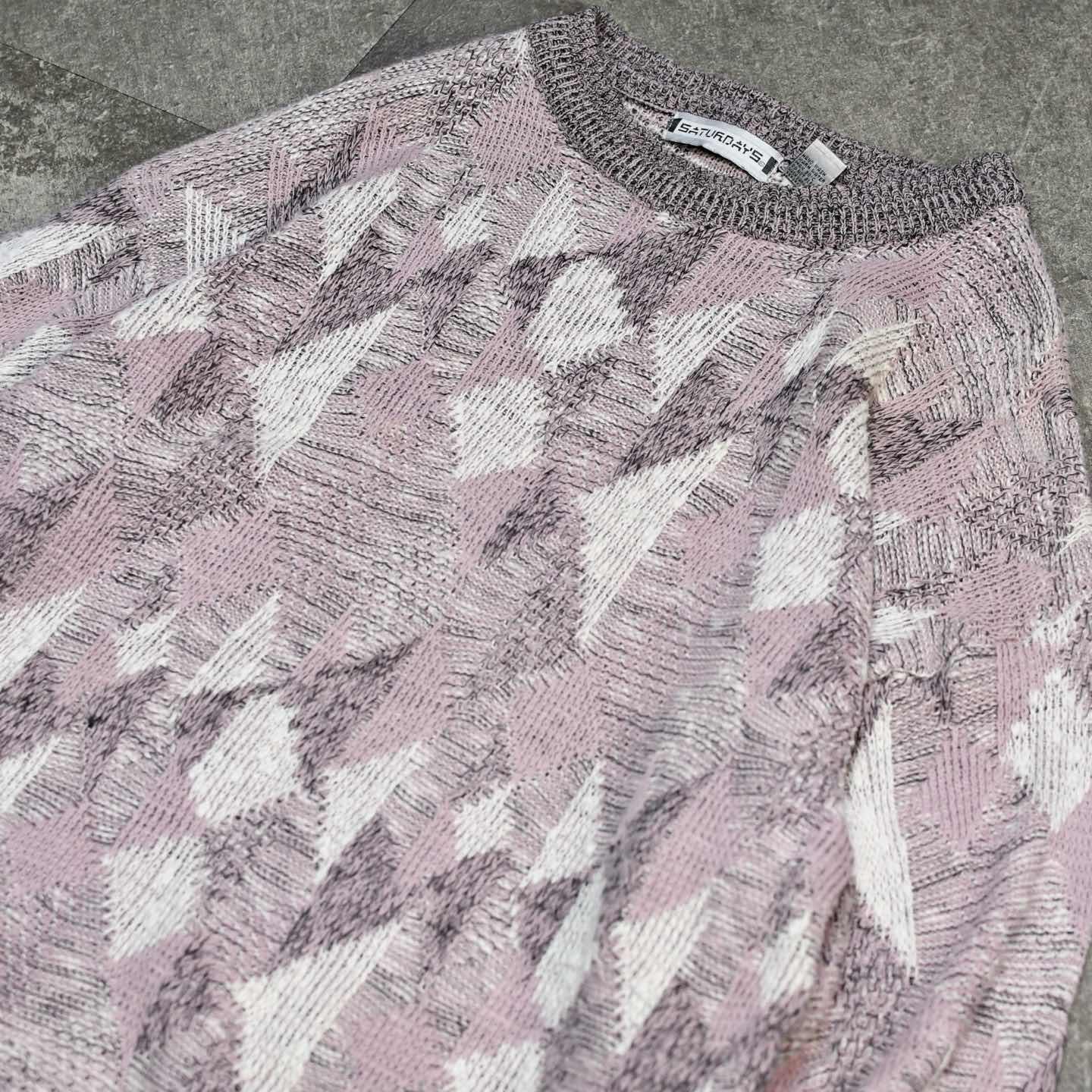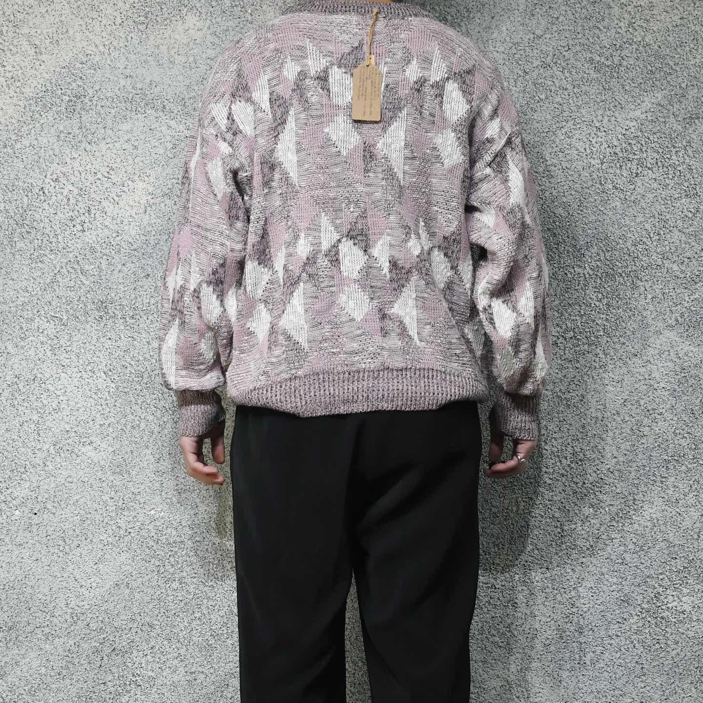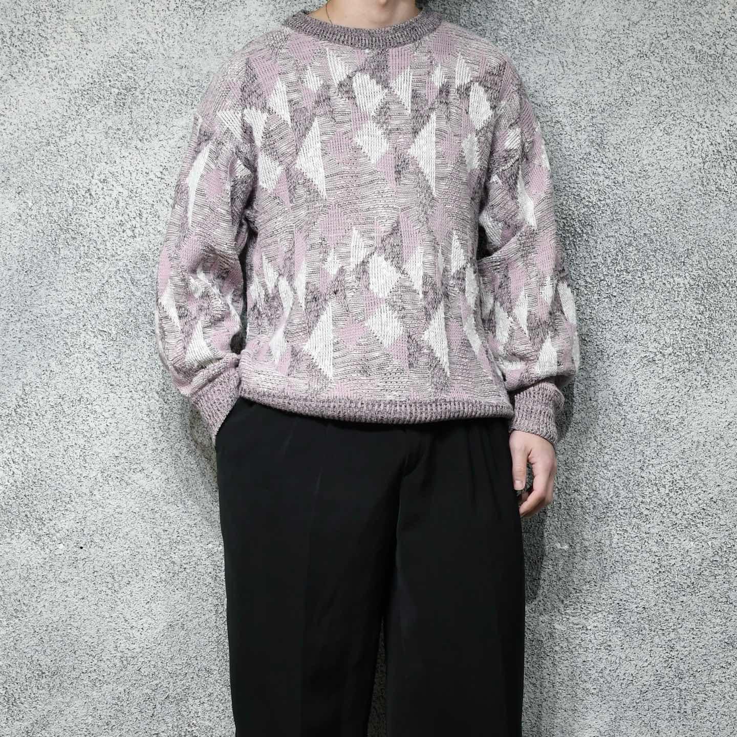 古着 コットン ラミー デザインニット ニット セーター ピンク メランジ