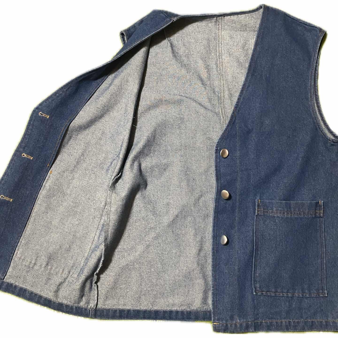 00s L.T.S denim work vest 美品 着回し抜群 L •Brand: vintage •data: 00s L.T.S 新品同様 •point: 流行に左右されないデニムのワークベスト。サイドにパッチポケットが付いていて、デザイン性と機能性を兼ね備えています。さらに特質ポイントとしてはコーディネートをご覧いただきましたらわかると思いますが、圧倒的な着回し力です。 しかも2000年のヴィンテージで新品同様のラストテストサンプルだったら、長年あなたの相棒になると思いますので、コーディネートご覧になり、少しでもワクワクしていただきましたらご購入よろしくお願いいたします。 すべて、販売商品でまとめてみたコーディネートなので、参考にしてみてください ▷color◁ 濃紺 ※ブラウザで異なる場合ありますがかなり実物には、近づけてます、 ▷size◁ 平置き片面採寸【㎝表記】 表記size Lになります 着丈/72 身幅/56 ↓は、ベストのため、関係ない 肩幅/ 袖丈 / DSは袖はハンガー採寸 ※多少の誤差は理解下さい 170/Mジャスト体型の私が着て、✔️参考に ジャスト オーバーサイズ✔︎ ビックサイズ 【素材】 デニム 【状態】 新品同様一回洗っただけ、 検品、洗濯、検品で、3回チェックして発送しますので、ご安心して、お買い求め下さい!! #デニムベスト #アメカジ