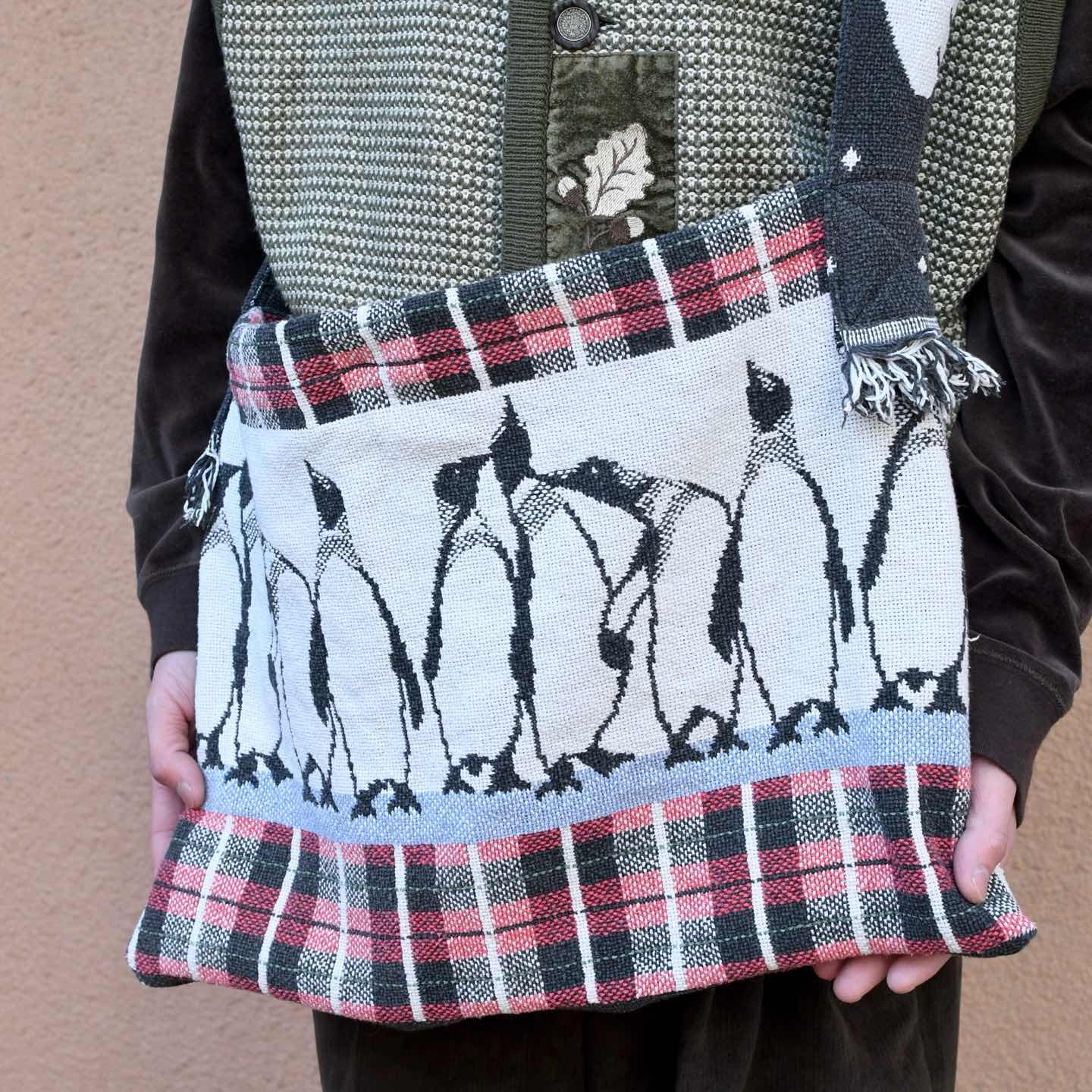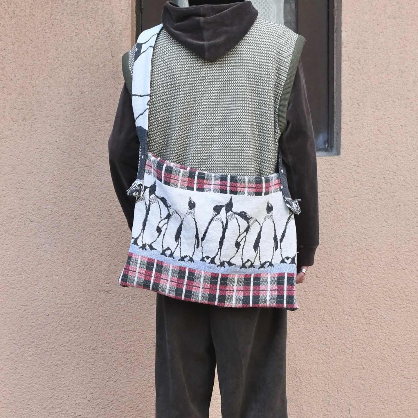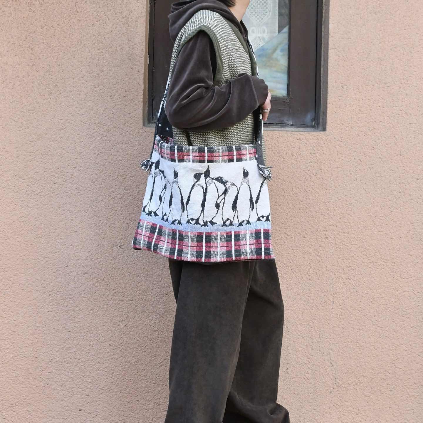 サイズ 縦36.5cm 横50.5cm ベルト103cm ベルト幅7cm ペンギン大集合。 おなじみ、大判ラグを解体しショルダーバッグへ 形を変えたリメイク品。 いつも以上に愛着が湧きそうなバッグになりそうです。 コートの上からや、シンプルにまとめたコーデで バックを主役したスタイリングなんかもおすすめです。 ※撮影状況により、実物と多少色が異なる場合が ございます。 ※古着を取り扱っているため、気付かない汚れ等がある場合がございます。 ※サイズは着用感で選んでおり、 表記サイズではございません。 表記サイズは説明欄の最初に記載しております。 古着 オーバーサイズ old vintage ヴィンテージ used 80's 90's アメリカ古着 ユーロ古着 POLO RALPH LAUREN Eddie Bauer OLD GAP LANDS' END ランズエンド LLBean エルエルビーン オールドギャップ エディーバウアー ラルフローレン ブルックスブラザーズ Brooks Brothers ハンドメイド ペンギン アニマル などがお好きな方 #vintage #オーバーサイズ #old #used #90s #80s #古着 #ヴィンテージ #アメリカ古着 #ユーロ古着 #LLBean #エルエルビーン #EddieBauer #エディーバウアー #oldgap #オールドギャップ #LANDSEND #ランズエンド #NAUTICA #ノーティカ #ラルフローレン #POLORALPHLAUREN #ブルックスブラザーズ #BrooksBrothers #ショルダーバッグ #ラグ #絨毯 #ハンドメイド #リメイク #バッグ #アニマル #ペンギン