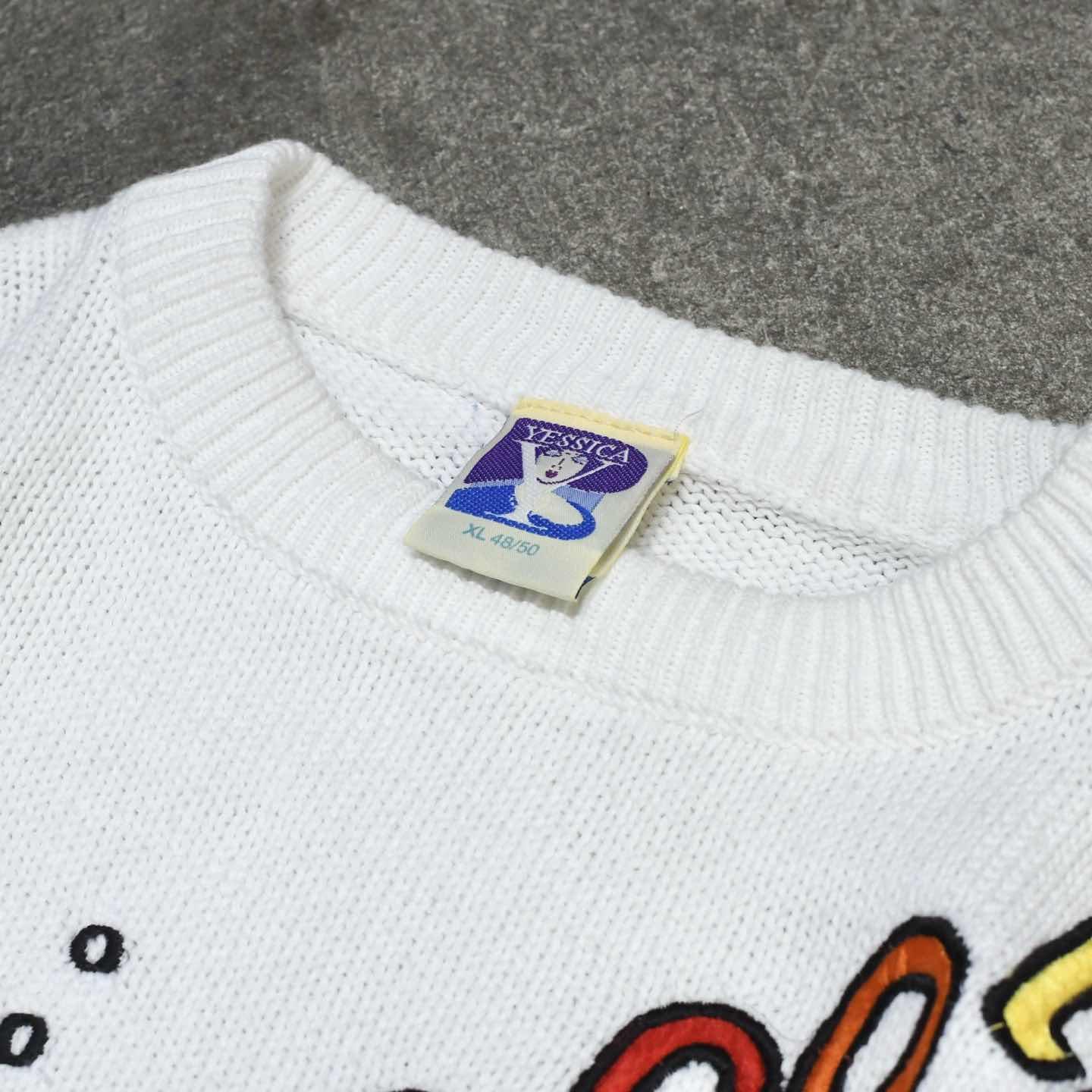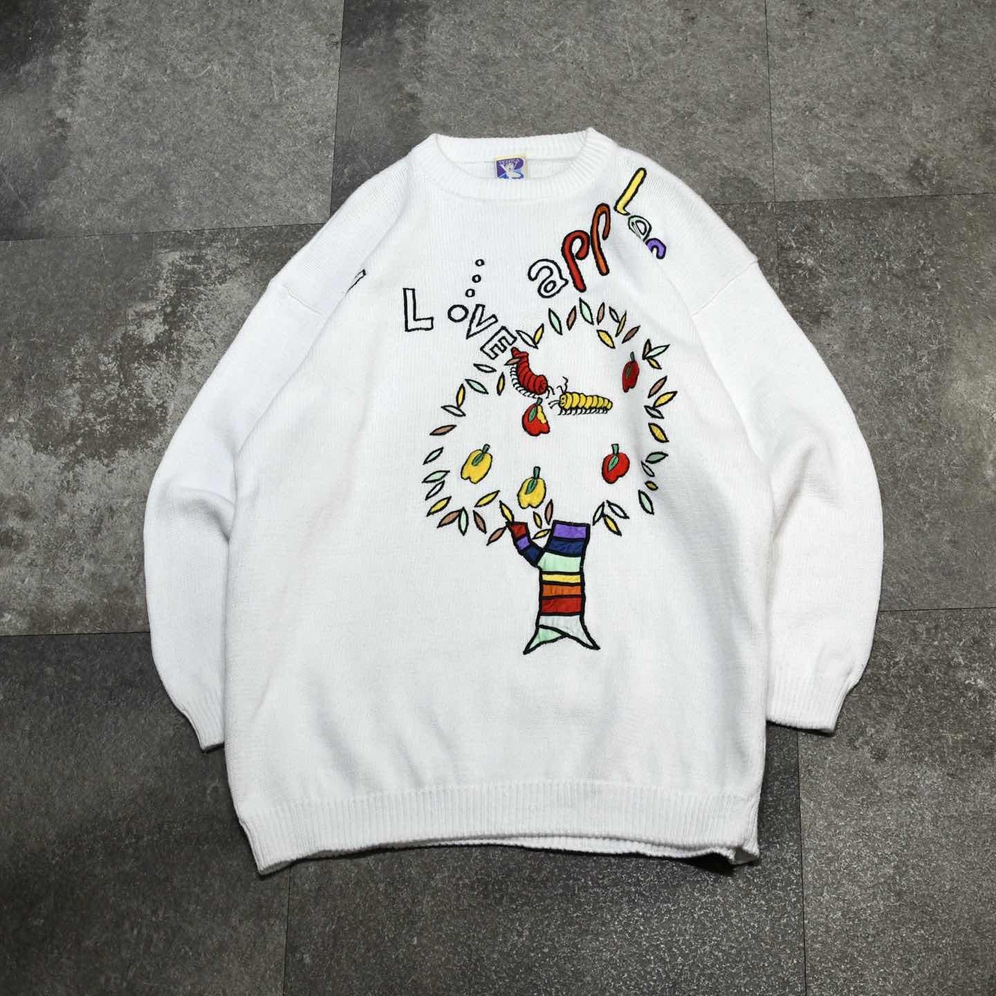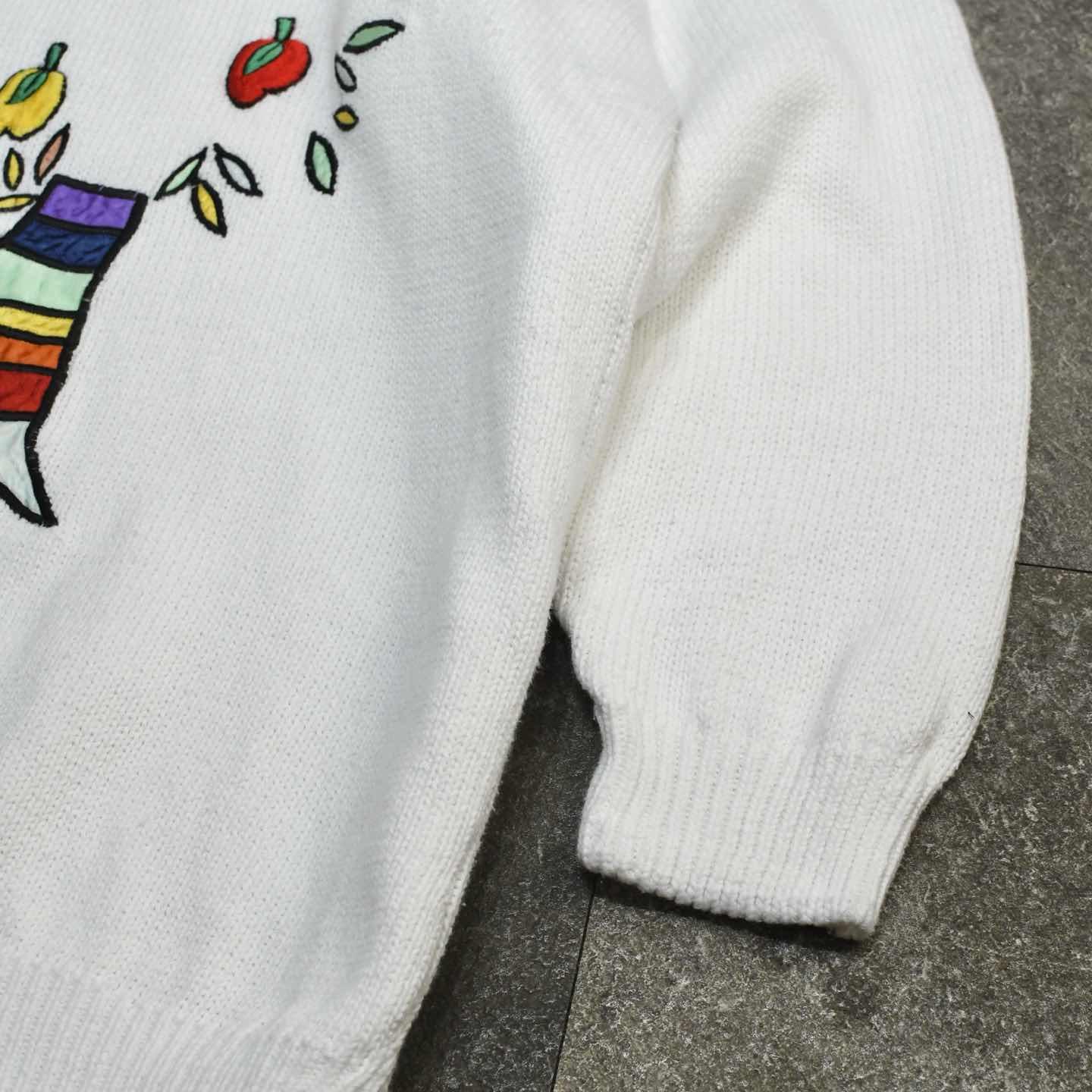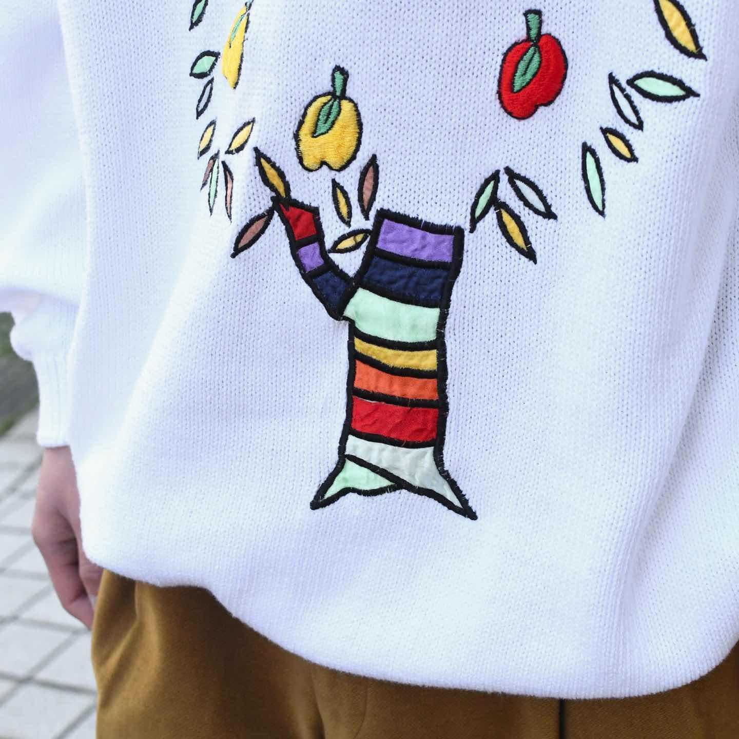 古着 刺繍 コットンニット ニット デザインニット ホワイト 白