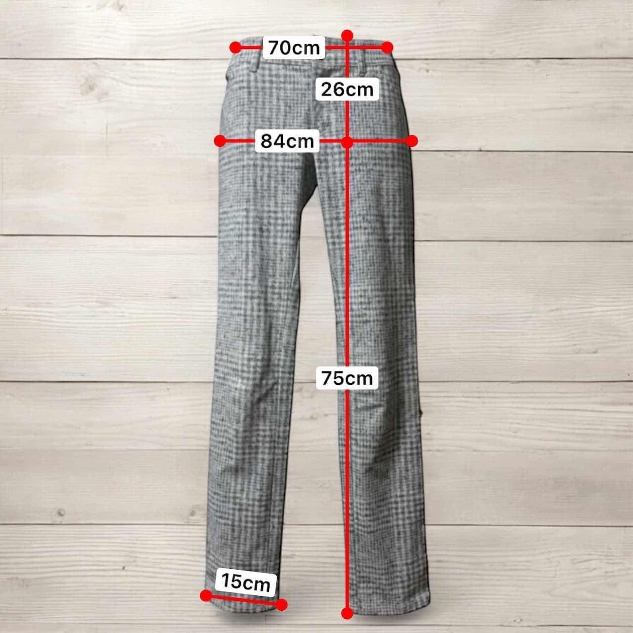 上品なチェック柄が魅力の LAUTREAMONTのきれいめパンツ。 すっきりとしたシルエットで オフィススタイルからカジュアルまで 幅広く活躍する一枚です。 ✔︎ 上品なチェックデザイン ✔︎ きれいめな細身シルエット ✔︎ 着回し力抜群の万能アイテム 【ブランド】 LAUTREAMONT(ロートレアモン) 【寸法】 Size 36 ウエスト...70cm ヒップ ...84cm 股上 ...26cm 股下 ...75cm 【素材】 ポリエステル 90% ポリウレタン 10% 【製造国 】日本 【コンディション】 全体的に使用感がある商品 ※画像の商品は光の照射や角度により実物と色味が異なる場合がございます。